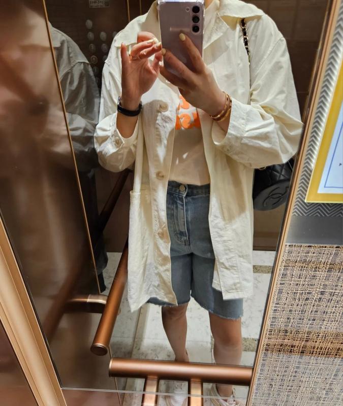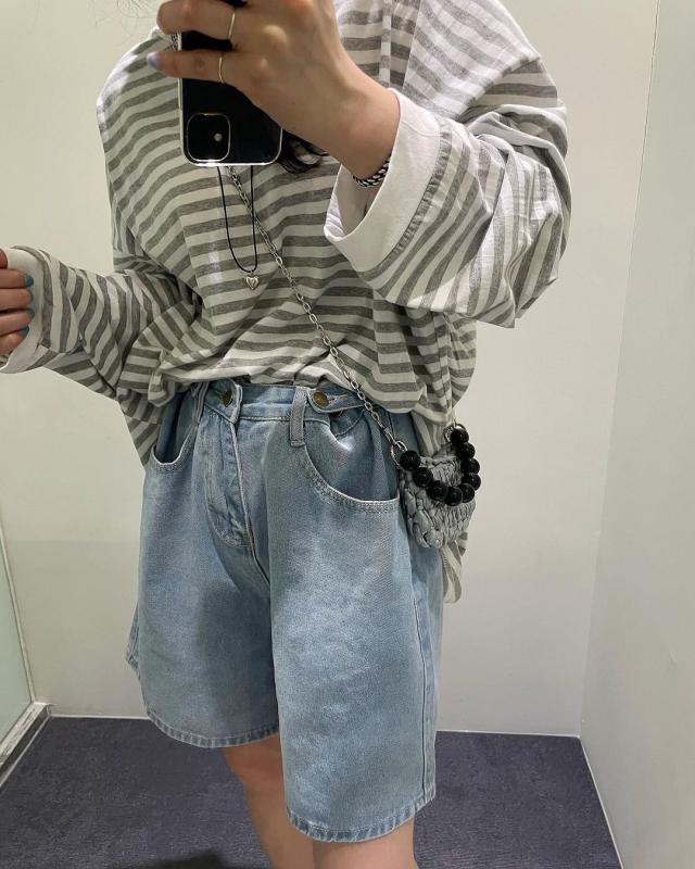 장마철엔 팔에 비맞으면 찝찝해서 긴팔에 반바지 고집하는 나란 사람 처럼 ㅎㅎㅎㅎㅎㅎ 고집하시는분들 요 코디 추천이요☑️