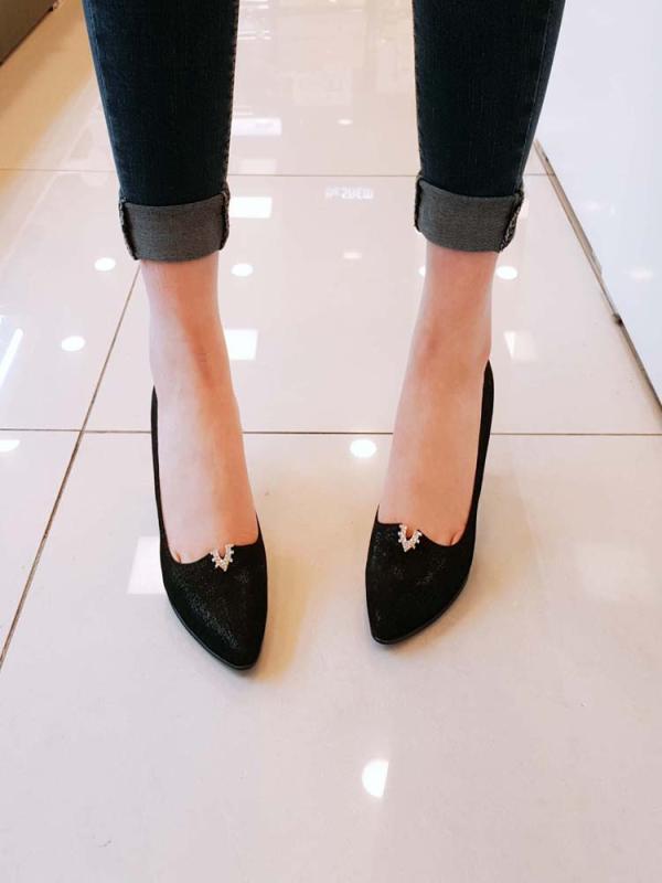 브이라인 앞코 실버장식 펌프스스틸레토힐 고급여성수제화