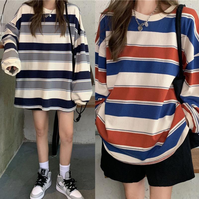 지오다노 여 스트라이프 긴팔티 323504