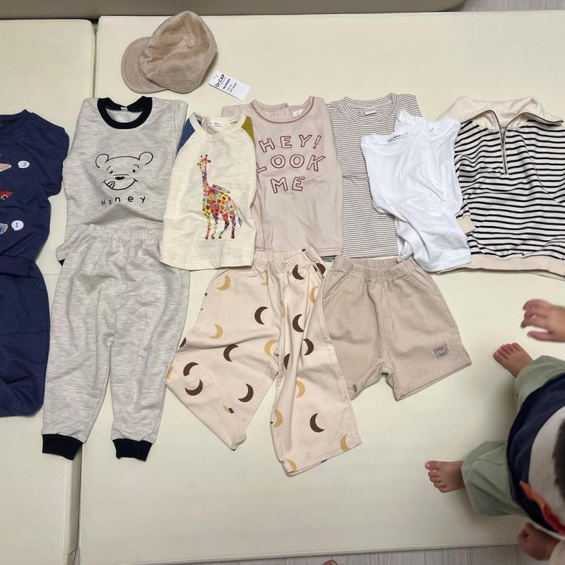 하준이 룩북 가을룩북 하늘아래같은스트라이프는없다 만 4개삼 ˆ̑‵̮ˆ̑ 아들인형놀이도꿀잼 이라며 오늘 산 옷들 신나게 빨래돌려서 흰티 물들이는 엄마어떤데