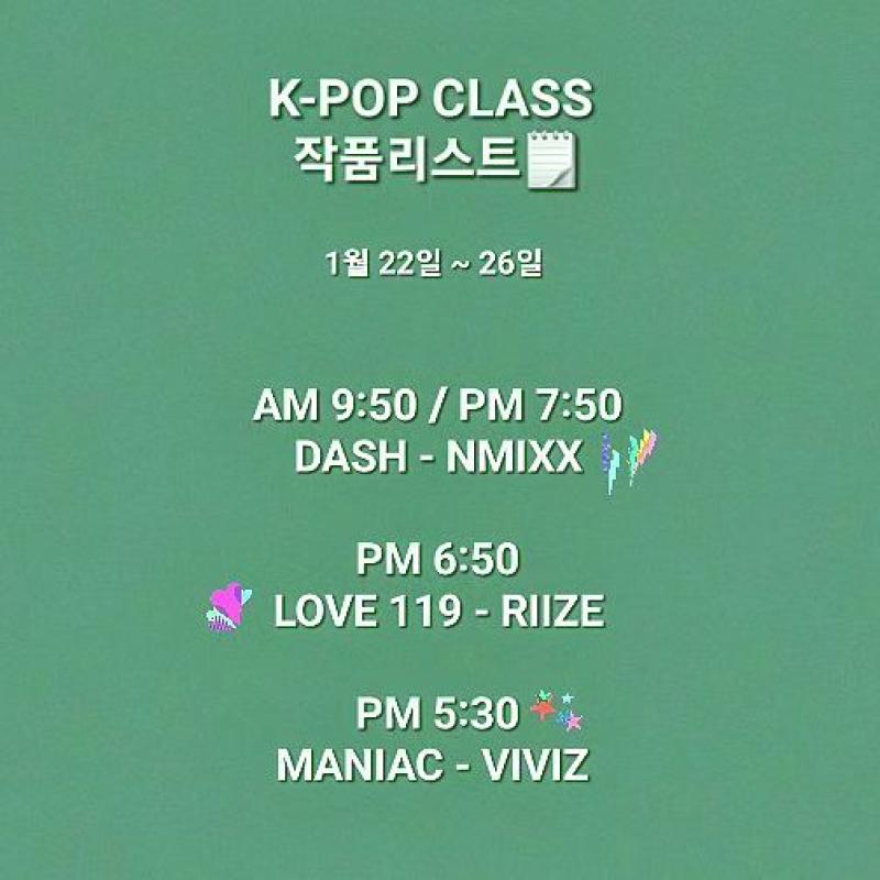 매주 화,목 진행되는 K-POP CLASS 1월 4주차 작품리스트입니다🗒