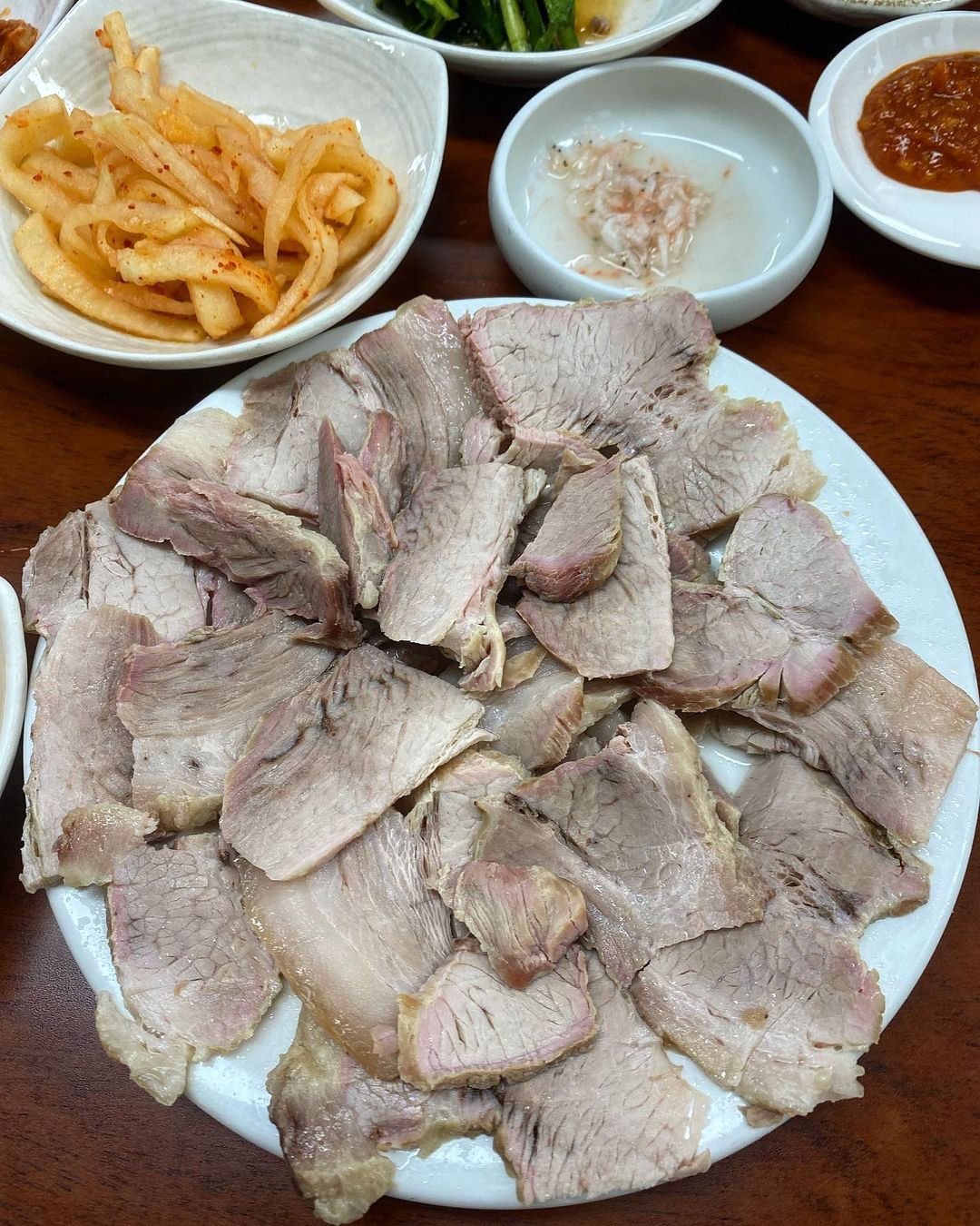 왜 1인 1수육이라고 하는지 알겠는 맛이다••• 먹다보면 한판 순삭- 🍽접시가 그리 그치 않아서 충분히 가능하다(੭•̀ᴗ•̀)੭ 먹다가 싸우지 말라구 1인 1수육 하시는듯(?)
