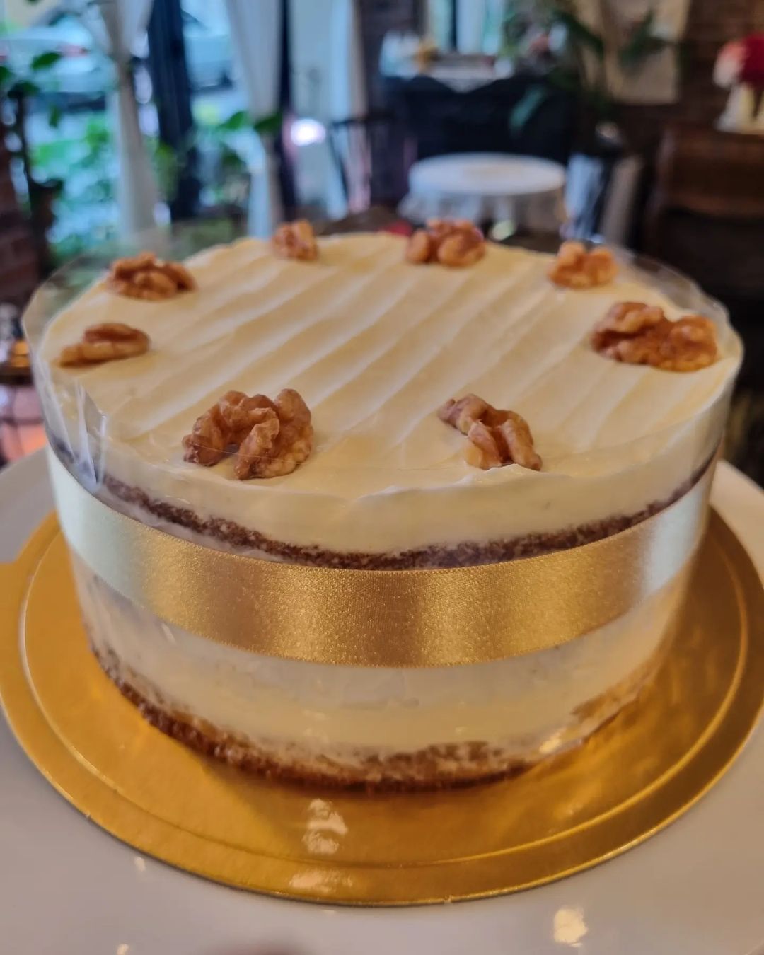 바나나를 베이스로 다진 파인애플과 호두,코코넛이 들어간 케이크에 크림치즈 프로스팅을 곁들였습니다