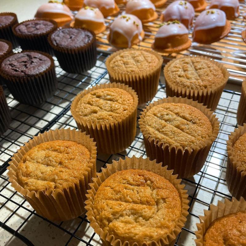 발로나초콜릿컵케이크, 커피크림컵케이크, 레몬파운드, 에그타르트, 초코청크스콘, 휘낭시에, 솔티캬라멜휘낭시에(12시10분) 준비해두었어요〰️